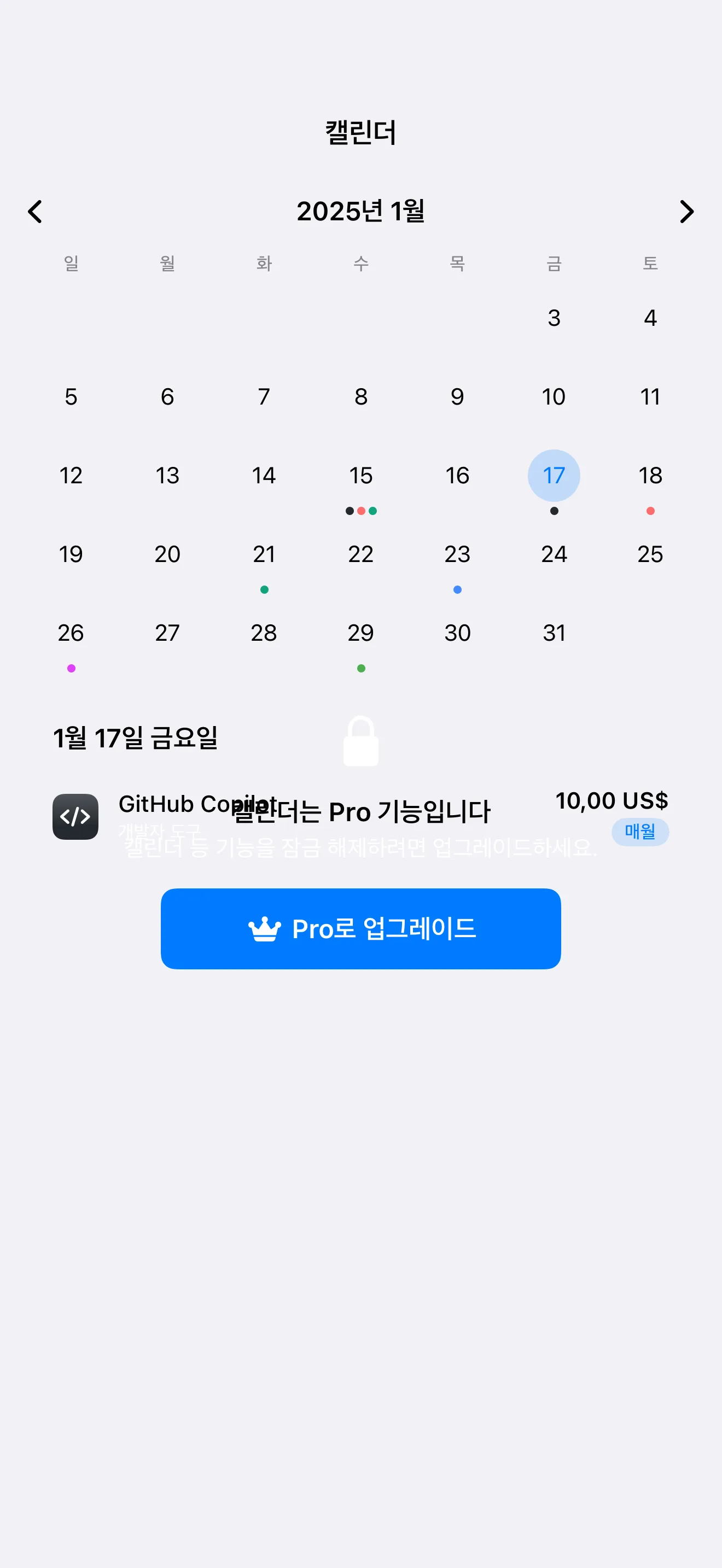 다가오는 결제를 캘린더로 시각화. 주단위 지출 계획.