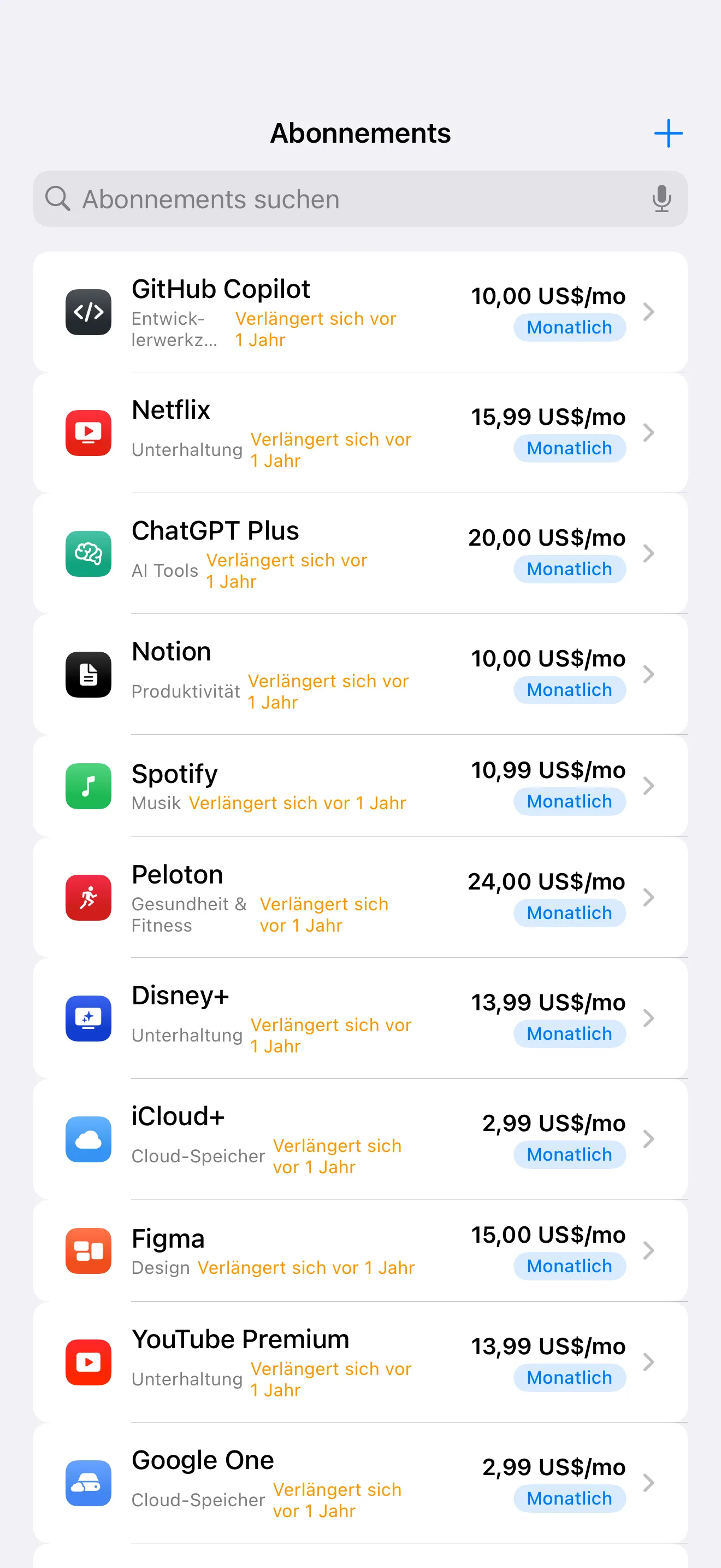 Alle Abos auf einen Blick. Monatliche und jährliche Ausgabenübersicht mit Trendanalyse.